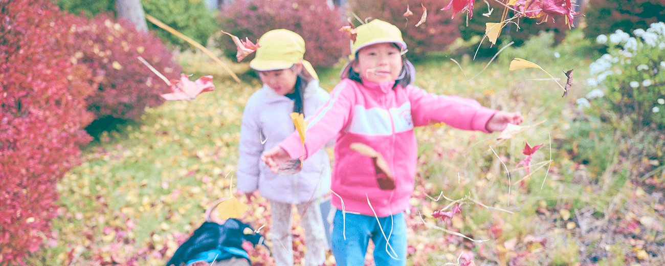 子どもたちは園庭はもちろん大小様々な公園で四季を感じたり、遊びを創作することができます。