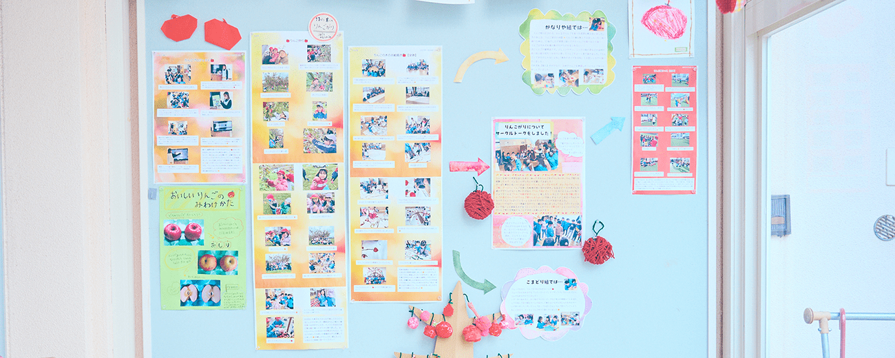 私たちの園では、ドキュメンテーションを作成し、子どもたちの学びのプロセスを可視化して共有する